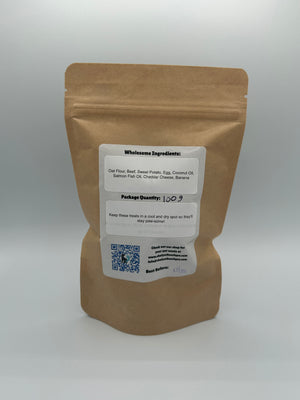 Fresh-Baked • All Ages • All BreedsEvery crunchy bite of our “Flavorful Beef” treats is packed with pure love and nourishment, made to delight dogs of all breeds and sizes. Crafted with care using shredded cooked beef, wholesome sweet potato purée and fresh egg, these oven-baked bites are a clean, delicious alternative to the preservative-filled snacks found on big box shelves.