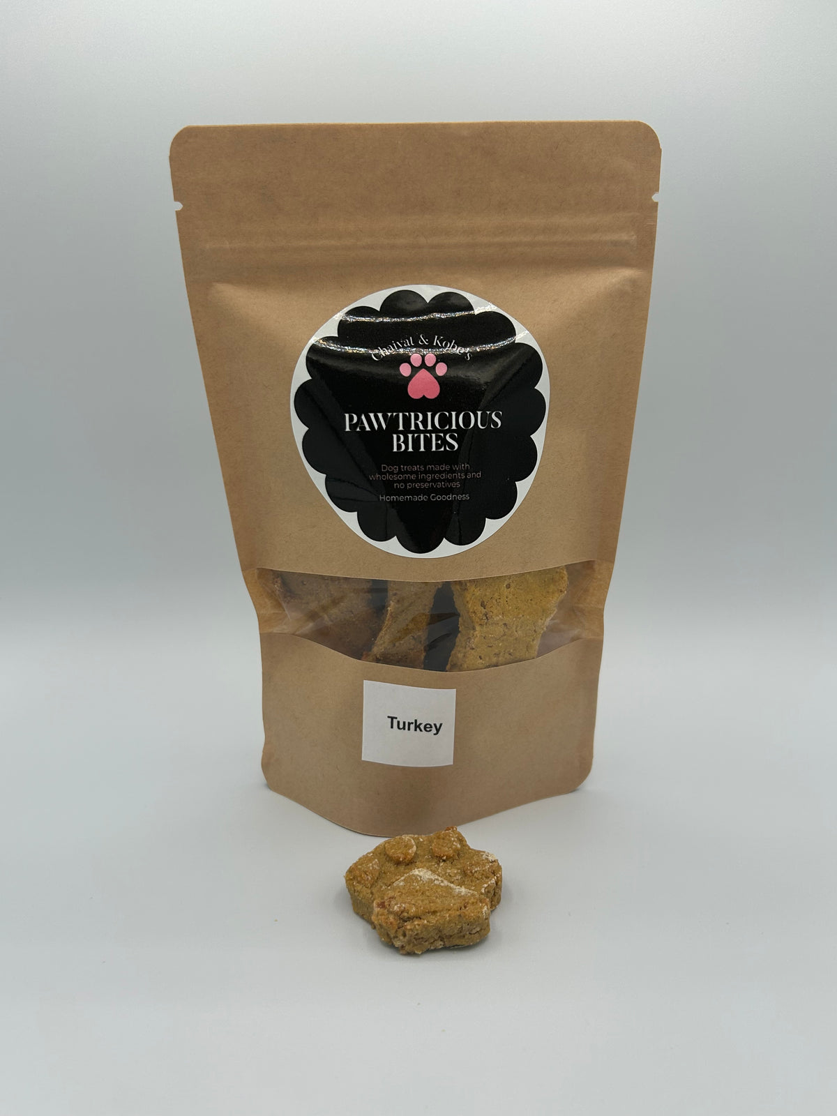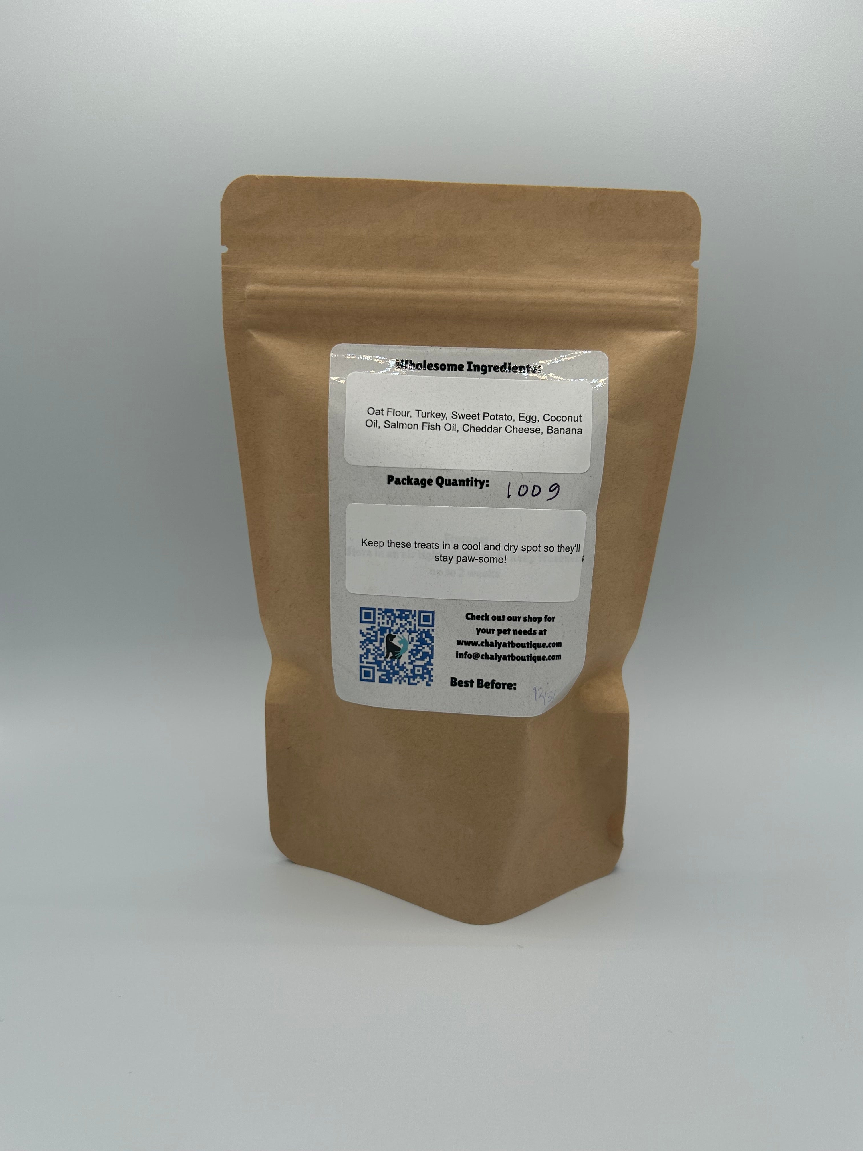 Fresh-Baked • All Ages • All BreedsEvery crunchy bite of our “Gracious Turkey” treats is packed with pure love and nourishment, made to delight dogs of all breeds and sizes. Crafted with care using shredded cooked turkey, wholesome sweet potato purée and fresh egg, these oven-baked bites are a clean, delicious alternative to the preservative-filled snacks found on big box shelves.